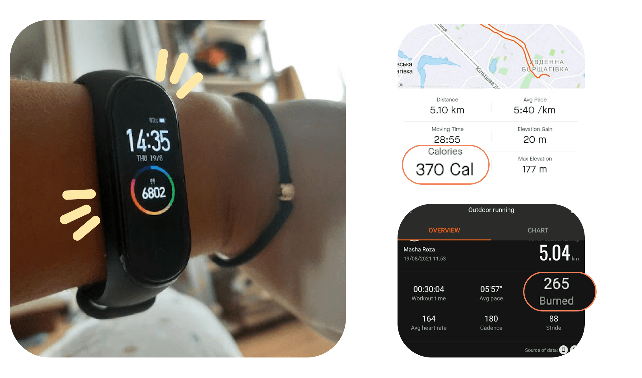 This simple, relatively cheap fitness band tracks my pulse and shows how many calories I’ve burned. Before, I was tracking my burned calories on Strava. Today, the results surprised me when I tracked my distance, pace, and calories using both the Strava app and Xiaomi band! It seems like I spent almost 100 calories less on every run than I’ve expected.